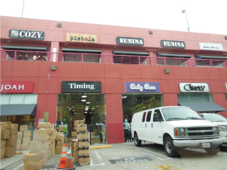もうひとつ。Fashion Districtは地理的にはダウンタウンのSan Pedro St.とStanford, 9th St.と12th St.の間にあり、比較的近いところ(Los Angeles St.と9th St.の近辺)のビル群にショールームが固まっている。ショールームの効率的な活用もビジネスを活性化してくれる。聞くところでは、毎月400ドルから2000ドル、あるいは〜4000ドルの費用がかかる。エージェントへの注文が入った際のコミッションは売上の12% 〜15%が多い。米国市場での販路を目指す日本企業にとって、展示会を軸にした包括的な取組みも今後検証すべきと考える。