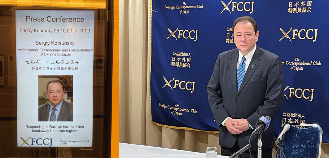 2月28日午前10時にウクライナのセルギー・コルスンスキー駐日大使、午後2時にミハイル・ガルージン、駐日ロシア連邦特命全権大使の記者会見がFCCJで予定されていた。しかし、ロシアが24日ウクライナへの軍事侵攻を始めたことで急遽日時が変更となった。加えて、同日午後4時からは米国のラーム・エマニュエル駐日大使の会見が加わった。