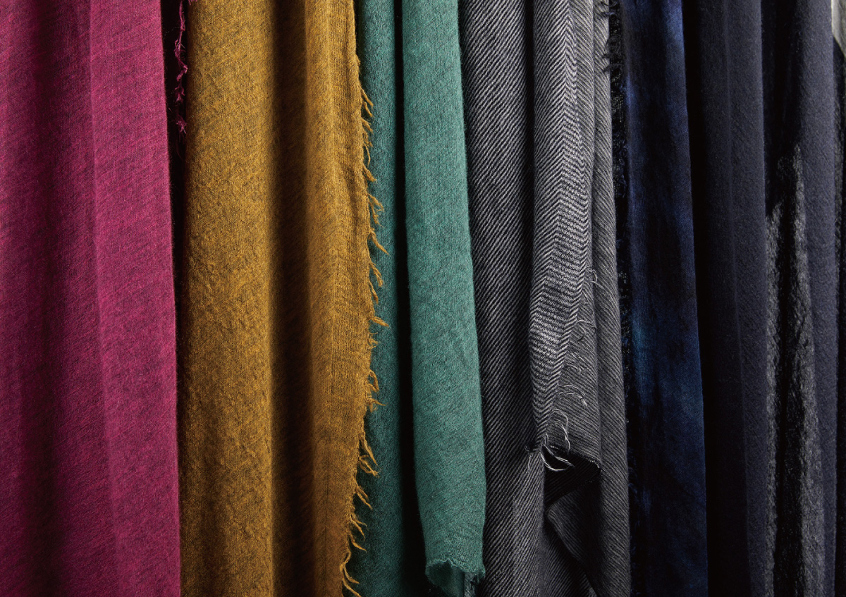 With a long history in the luxury jersey textiles industry, A-GIRL’S is in constant pursuit of high quality comfort in their fabric development, by utilizing equipment and technology, that is unique to the Wakayama region. The stole series from their original line GRISAL, is made from high quality cashmere that stretches naturally, and is a product in which you can “wear the warmth” of the light and airy feel of cashmere. This will be presented for the first time at Maison et Objet in Europe. The colour and pattern of the product is inspired by the deep and quiet colour of the Greenschist found in Wakayama, and the stole is uniquely knitted and cut without any waste, for an added sustainable value.